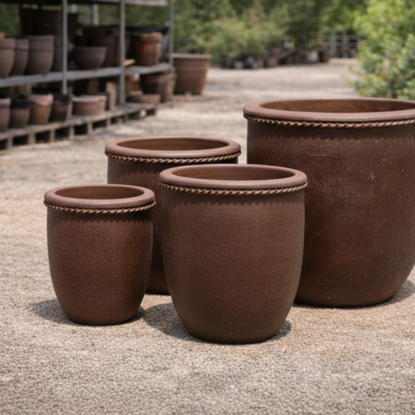 Black Clay Round Lipped Planter