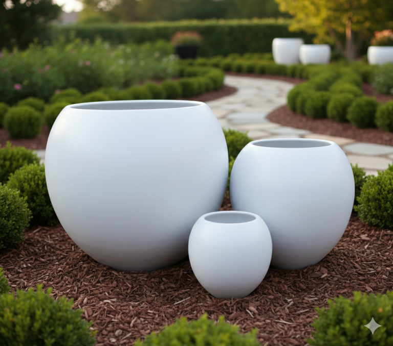 Contemporary Geometric Silhouette The striking “bowl-orb” design provides a clean, minimalist aesthetic that complements both traditional formal gardens and ultra-modern outdoor living spaces. The seamless finish eliminates harsh lines, echoing the natural shapes found in your greenery.