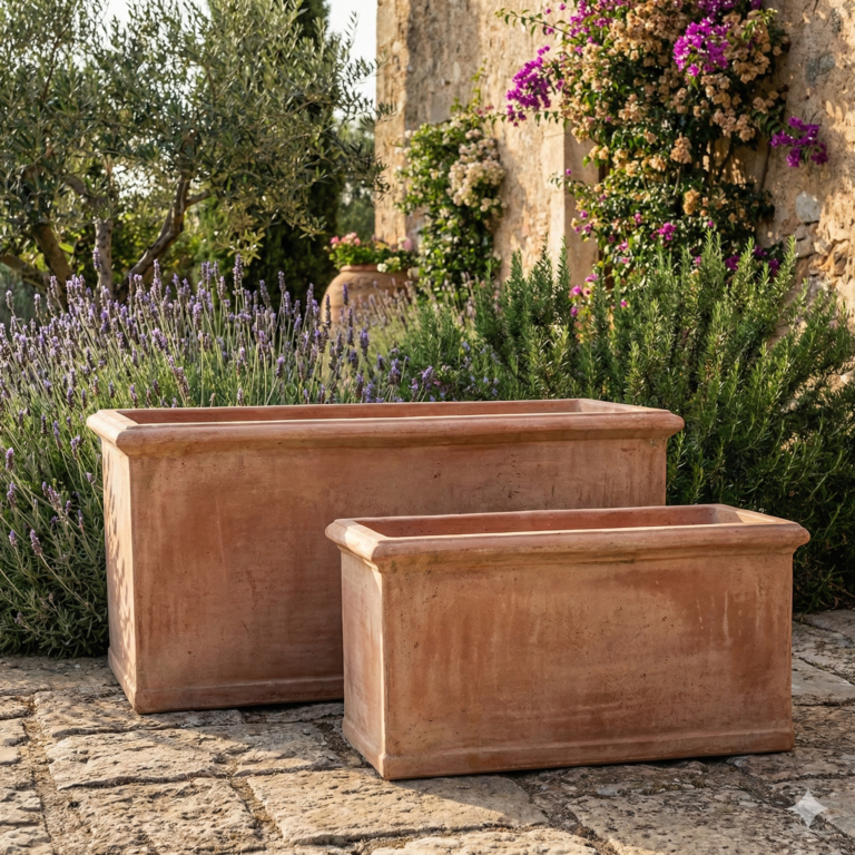 Classic Italian Profile: Features a refined, clean-lined rectangular shape with a subtle, elegant rim, designed to provide a sophisticated and balanced silhouette for large-scale plantings.