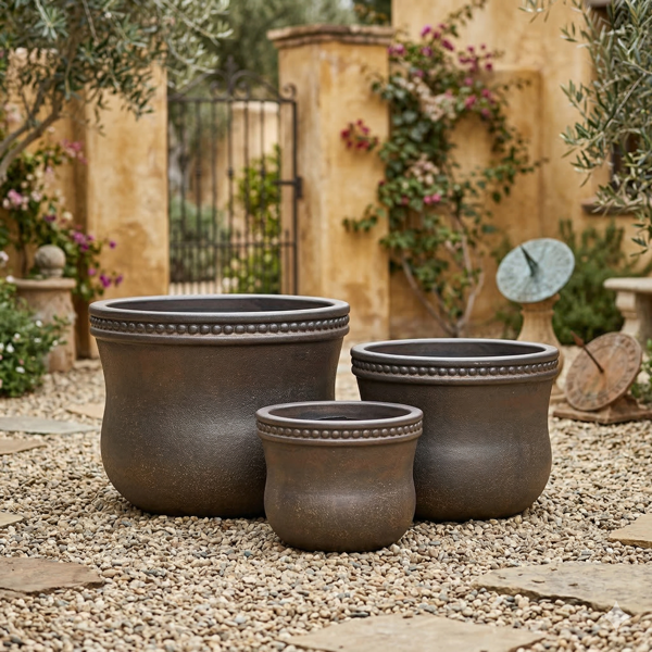 Artisanal Beaded Detailing: Each planter is finished with a distinct, raised beaded texture along the upper rim, adding a touch of classic elegance and visual depth to your garden layout.