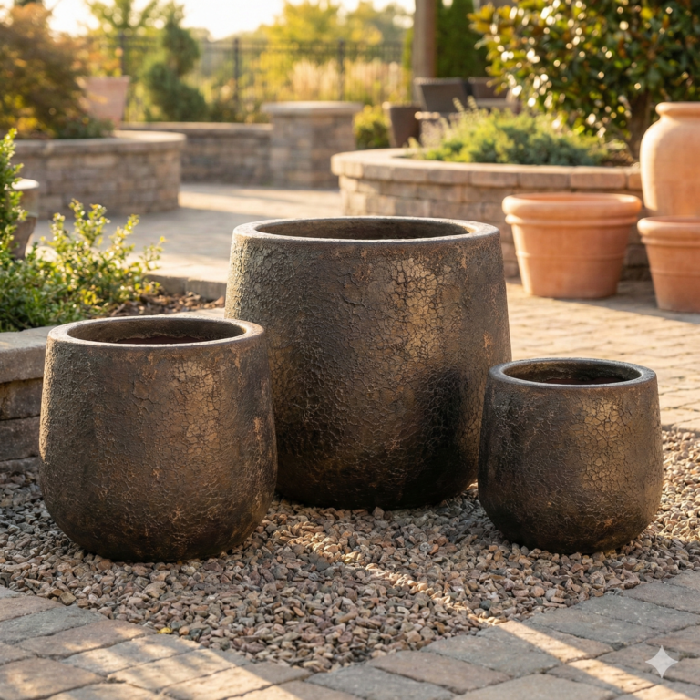 Graduated Trio Sizing: This curated set includes three distinct sizes, offering a pre-styled solution for adding depth and visual hierarchy to walkways, entryways, or landscape focal points.