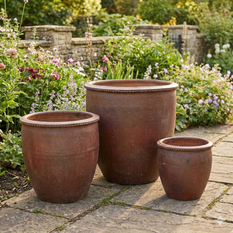 Graduated Landscape Trio: Provided as a set of three distinct sizes, allowing for effortless grouping and tiered visual interest on patios, entryways, or in garden beds.