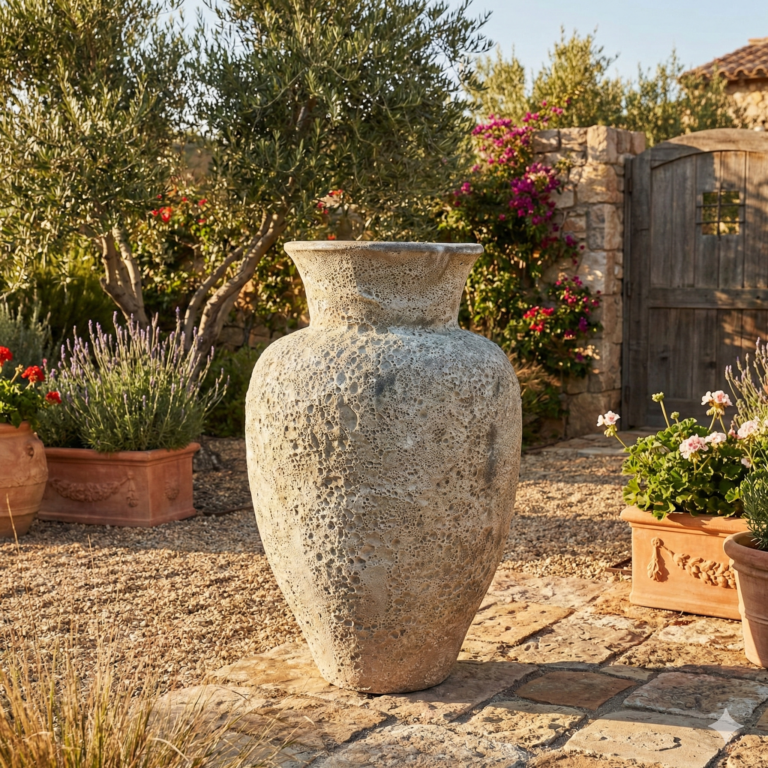 Artisanal Aesthetic: The rustic, tactile finish adds character and serves as a focal point in garden design.