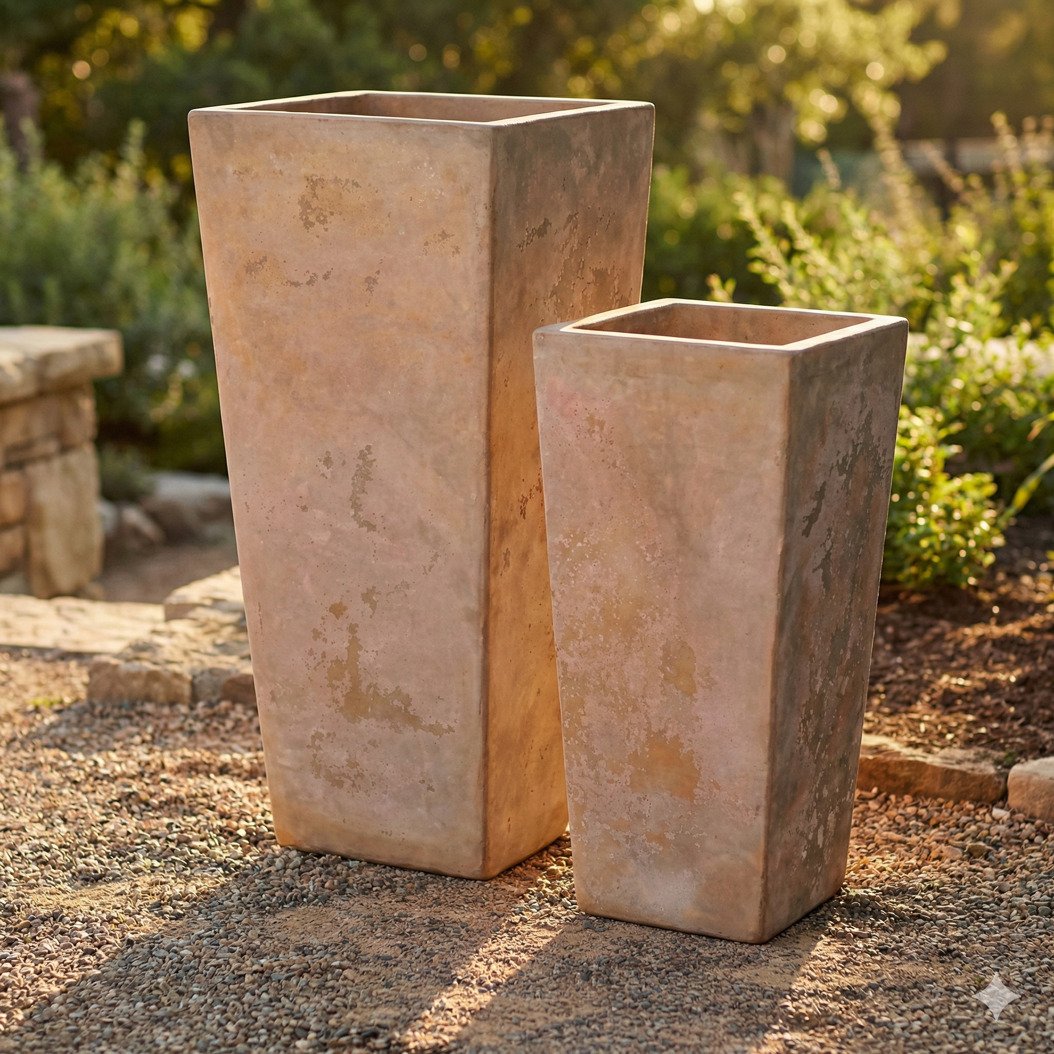Introduce timeless elegance to your garden, patio, or entrance with our Antique Terracotta Tall Square planters. These handcrafted pots feature a beautifully weathered, rustic finish that perfectly captures the look of aged pottery. Their sleek, tapered square shape offers a modern silhouette while the warm terracotta tones provide a classic, earthy appeal that complements any landscape. Available as a set or individually, these durable planters are perfect for showcasing your favorite plants and creating a stunning focal point in any outdoor or indoor setting.