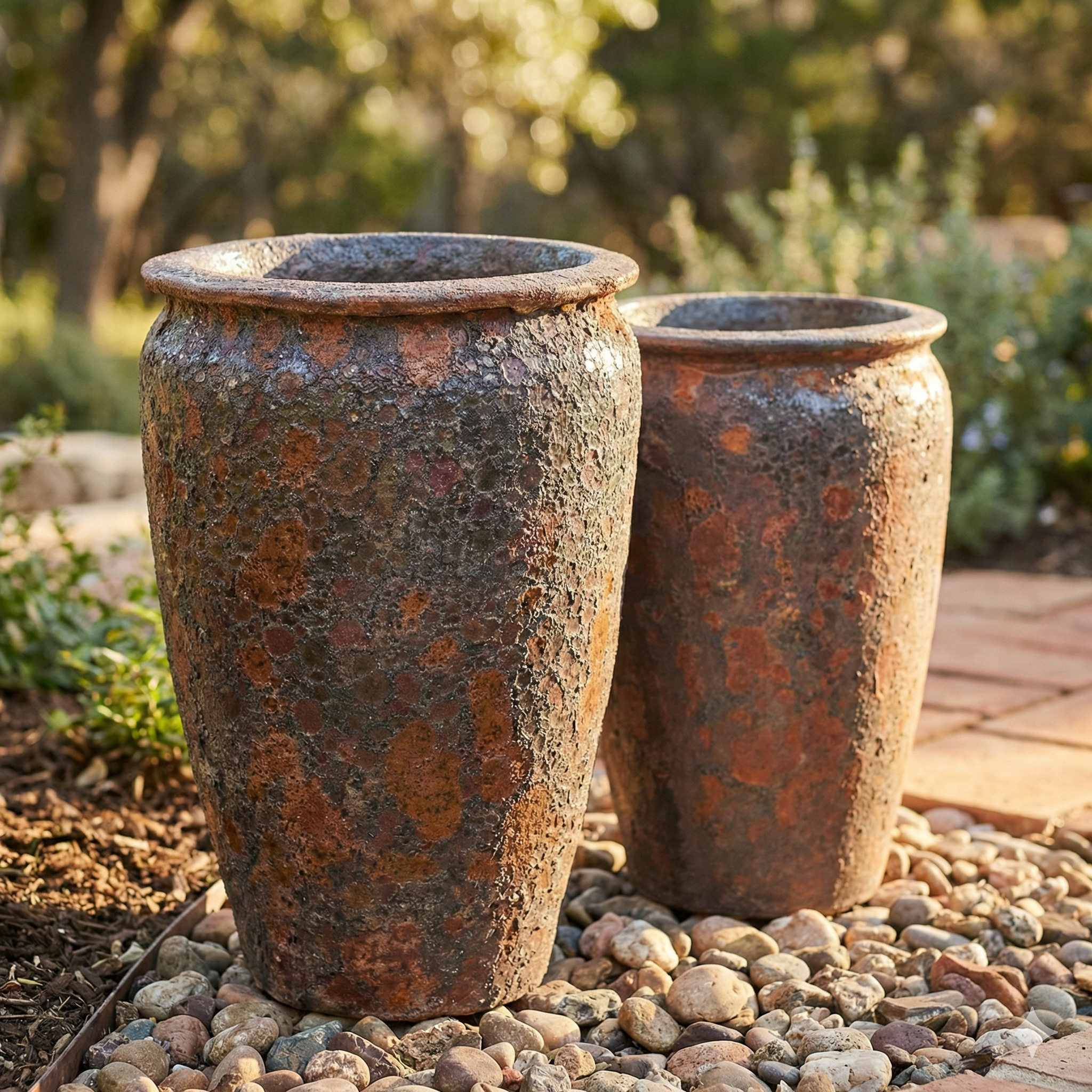 Introduce a touch of rustic elegance to your home or garden with the Bertland Planter Set. This set includes two beautifully crafted ceramic planters, as shown in the image, featuring a unique, aged terracotta finish with rich, spotted glazes of orange, brown, and earthy tones. The textured surface gives each pot an artisanal, one-of-a-kind feel. These durable planters are perfect for showcasing your favorite indoor or outdoor plants, adding warmth and character to any space.