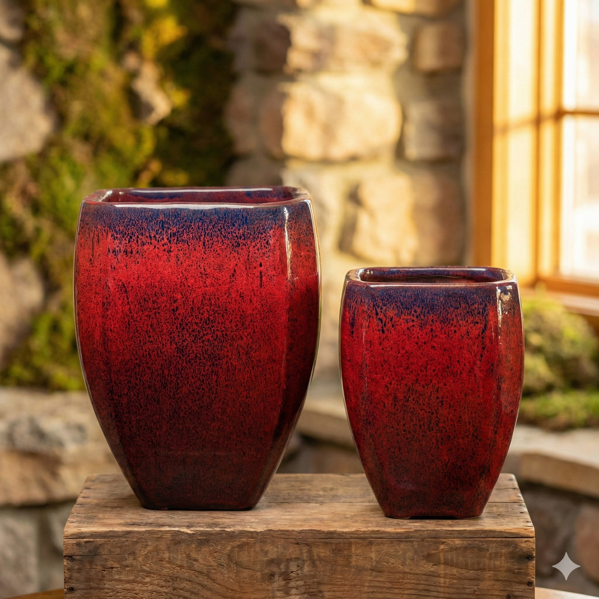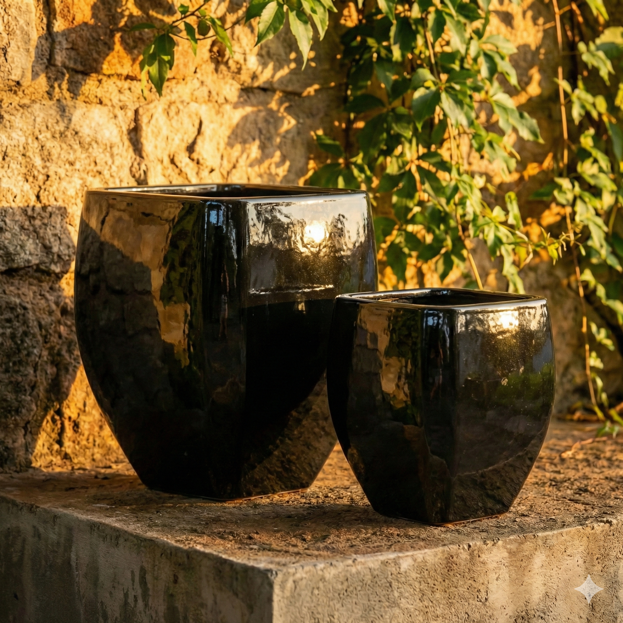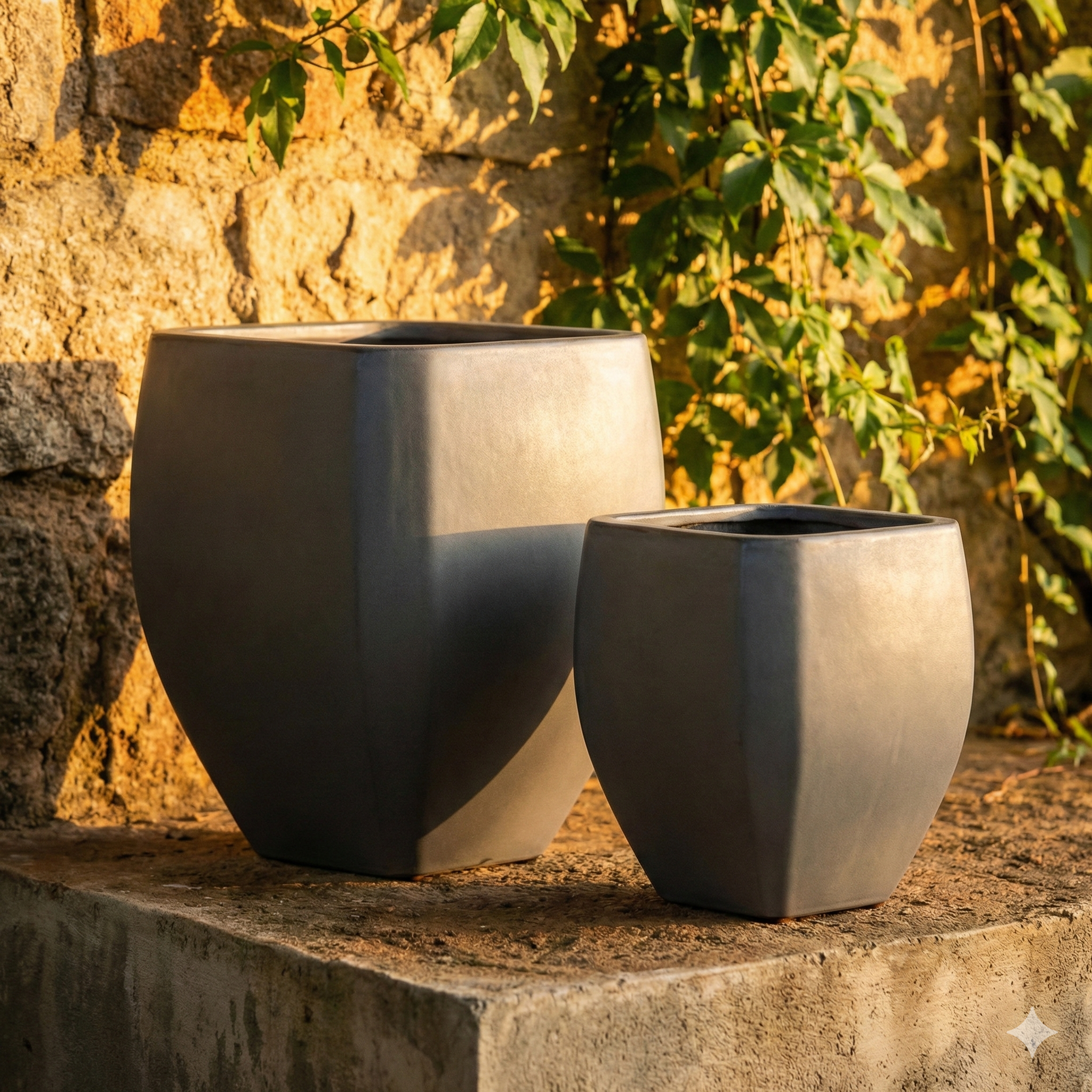 This set of two planters is all about bold geometry and sophisticated scaling. Designed for those who appreciate clean lines with a twist, these vessels feature a striking tapered square silhouette that transitions from a wide, confident rim to a stable, narrower base.