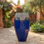 Stately Verticality: With its elongated, “bullet-style” shape and significant scale, this planter provides the necessary height to frame doorways or anchor large landscape beds without requiring a massive horizontal footprint.