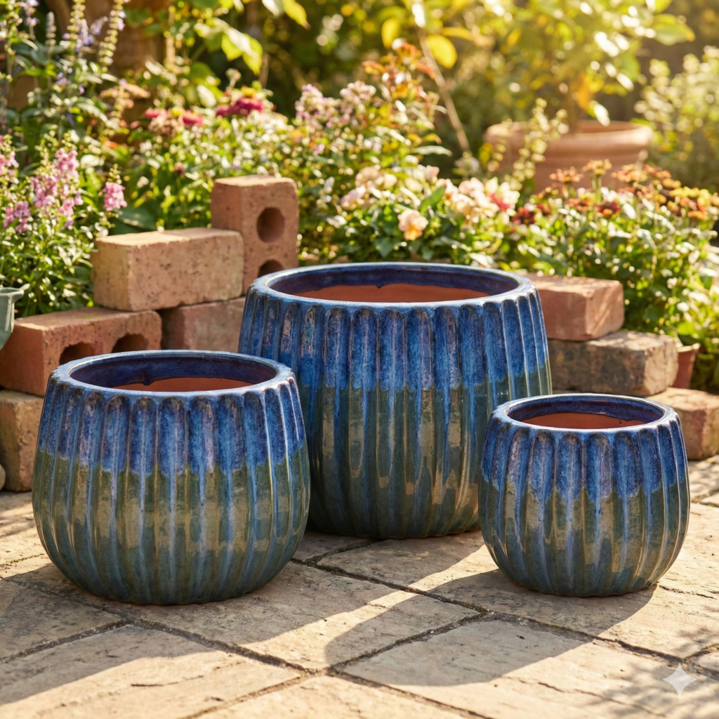Sculptural Fluted Texture: The deep, vertical ribbing provides a tactile, three-dimensional look that catches the light and adds architectural interest to any shelf, patio, or entryway.