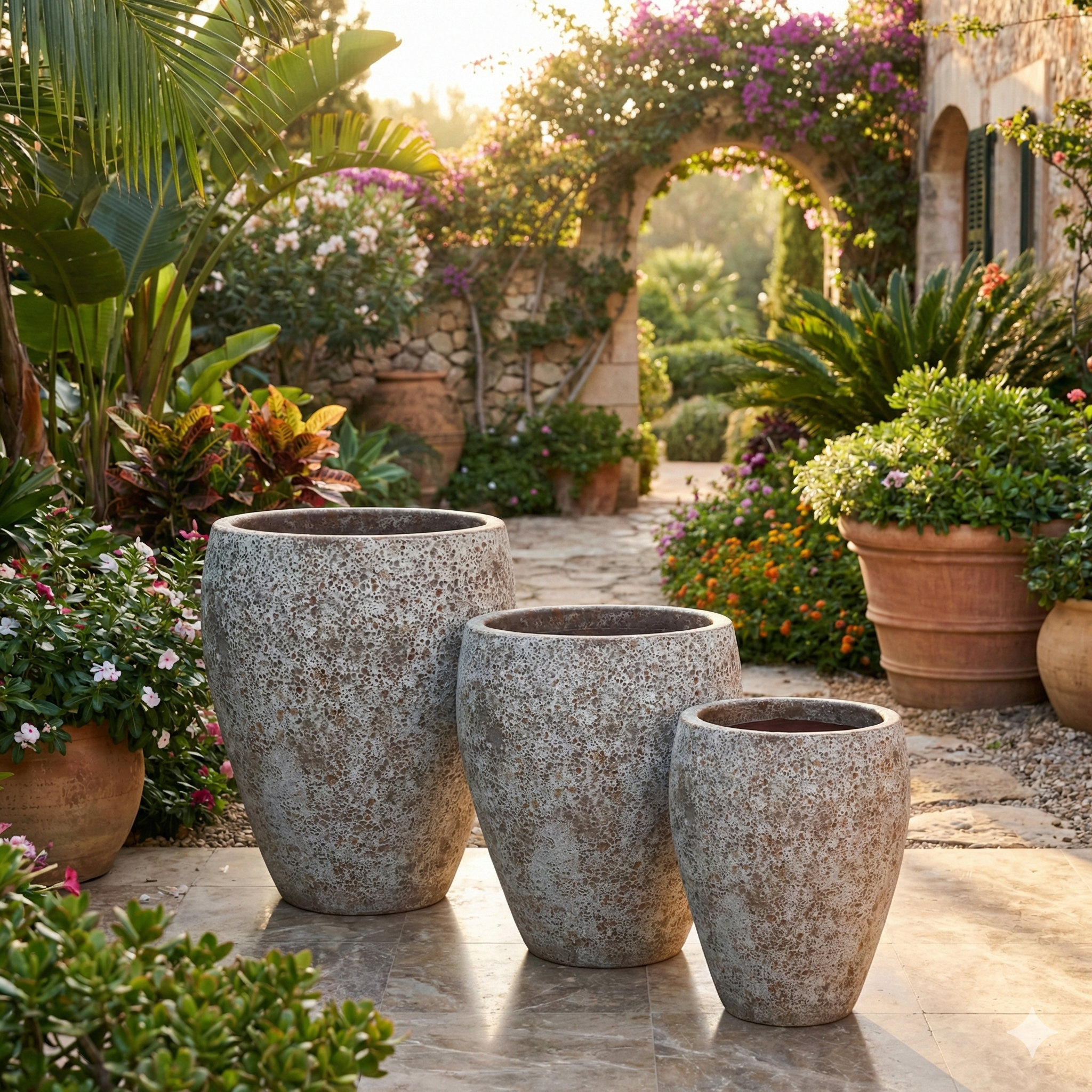 Graduated Trio Sizing: Curated in three varied heights, this set allows for effortless "rule-of-three" styling, creating instant visual depth and architectural interest in gardens or entryways.