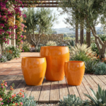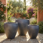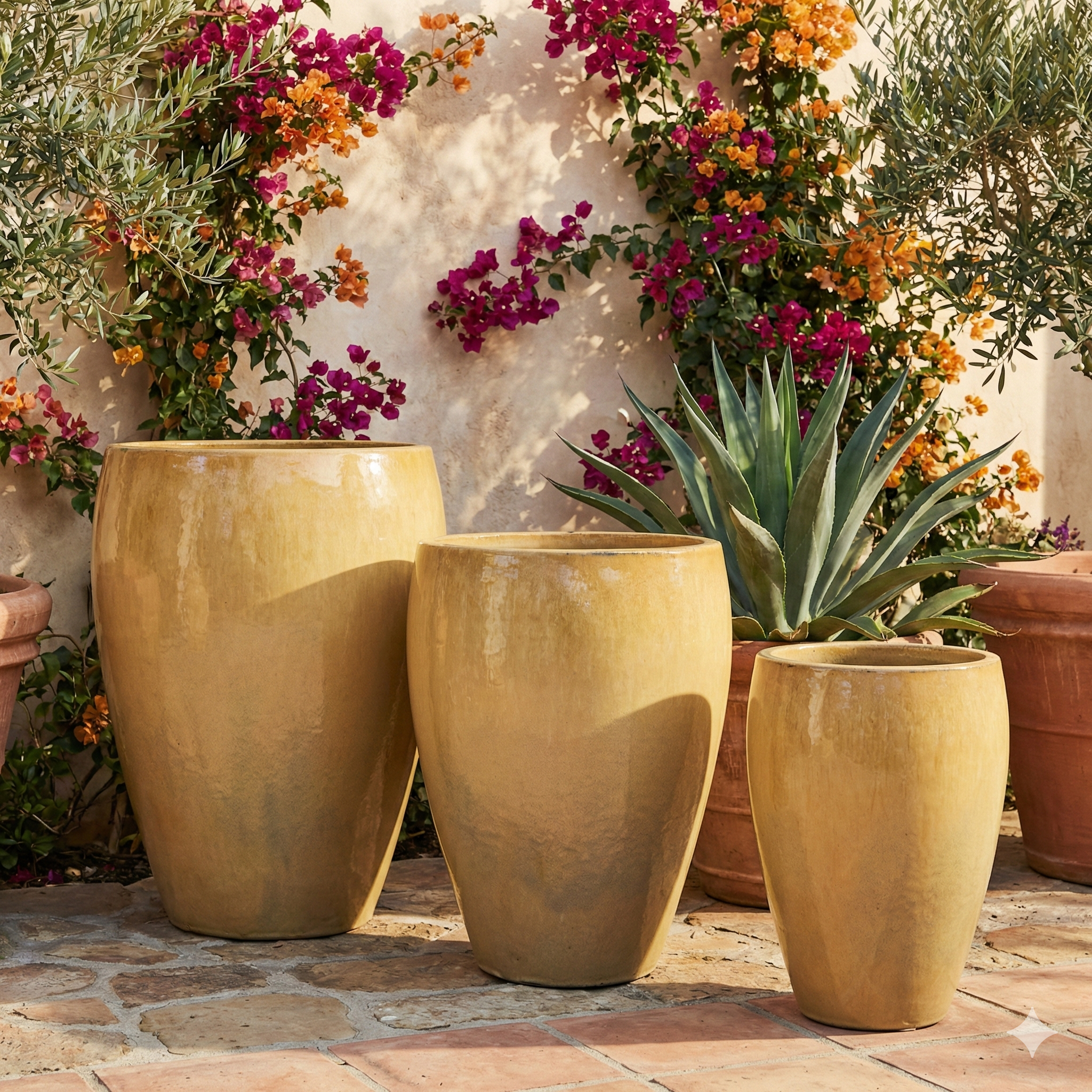 Elevate your outdoor sanctuary with this curated collection of three high-fired ceramic vessels. Designed with a sleek, tapered silhouette that balances modern minimalism with classic pottery traditions, these planters serve as a sophisticated focal point for any patio, terrace, or garden path.