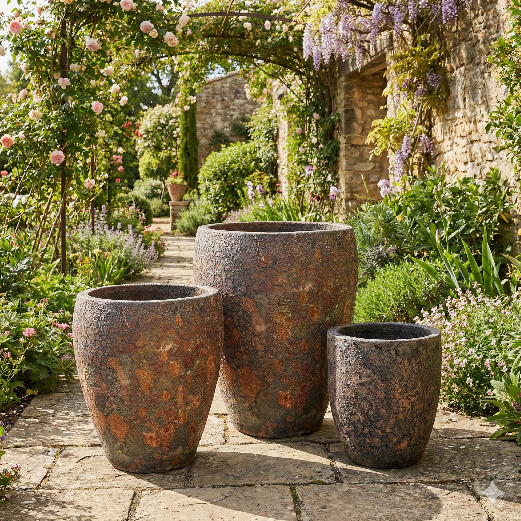 Graduated Trio Sizing: Curated in three varied heights, this set allows for effortless “rule-of-three” styling, creating instant visual depth and architectural interest in gardens or entryways.