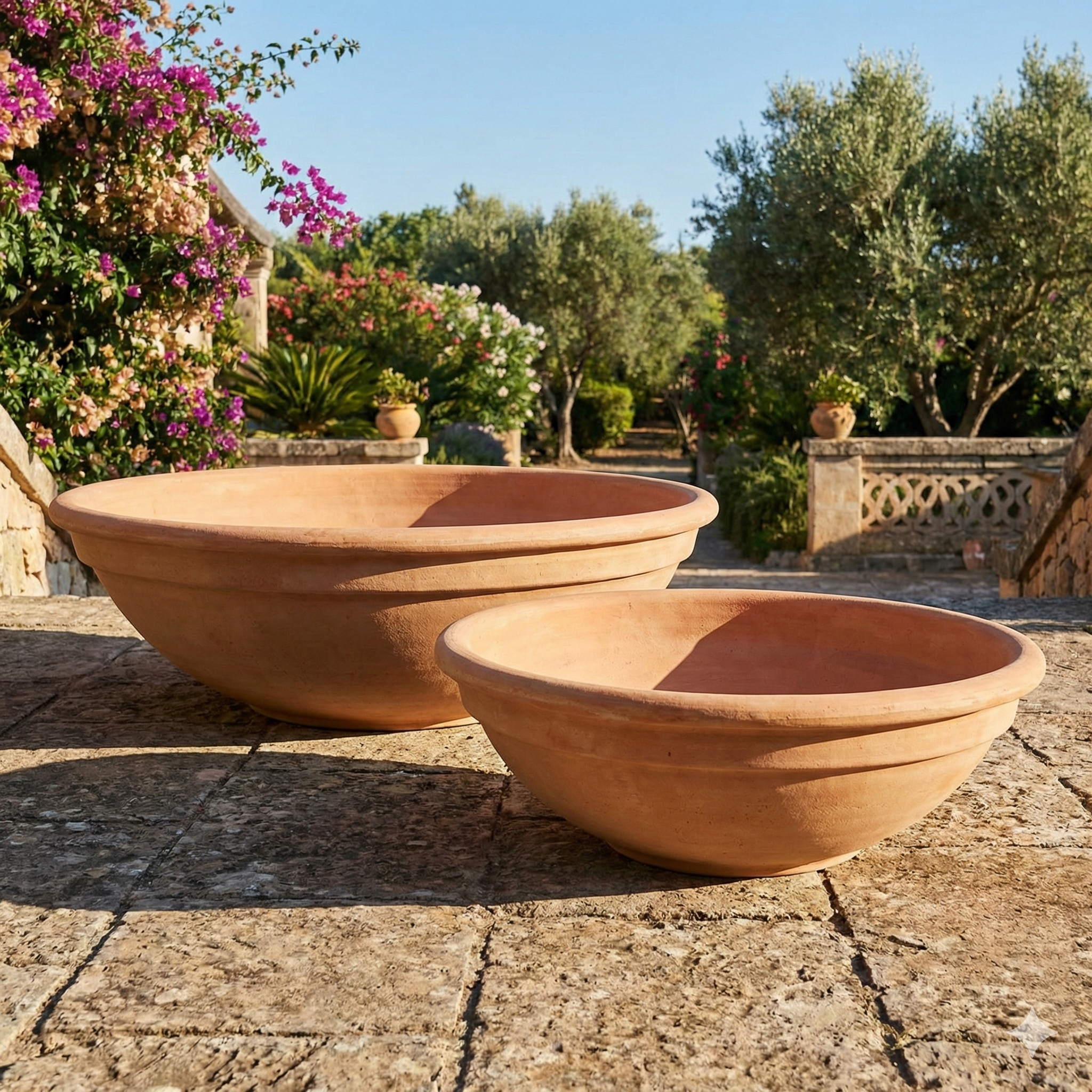 The Ciotola is a masterclass in classic Mediterranean design, characterized by its elegant, low-profile silhouette and expansive rim. This shallow, wide-mouth basin is specifically engineered to showcase low-growing floral arrangements, succulents, or decorative rock gardens without overwhelming the natural beauty of the plants. Its sweeping, tapered sides create a grounded, architectural presence that complements both rustic traditional landscapes and modern minimalist outdoor spaces.