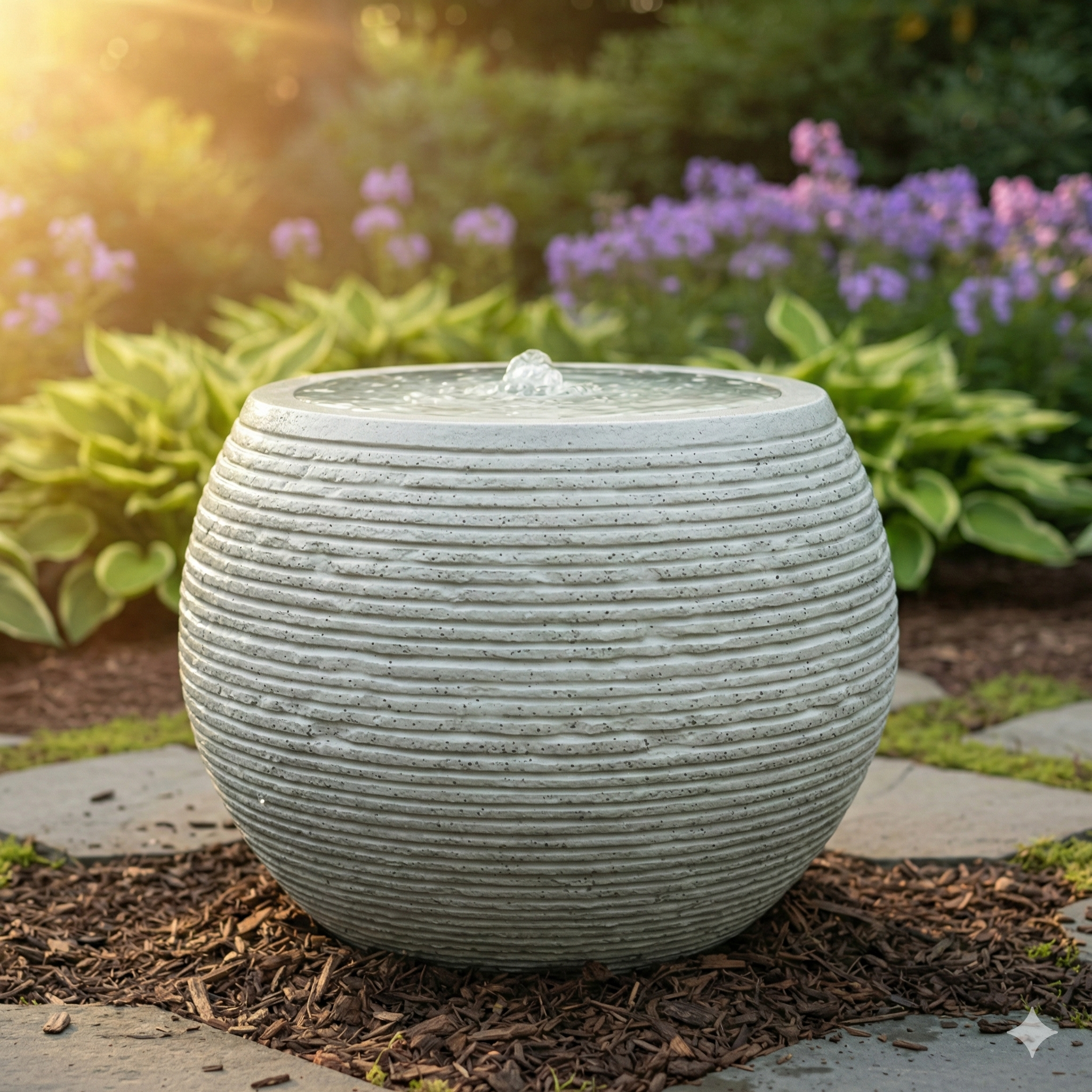 Enhance your outdoor living space with the sophisticated charm of the Fiberglass Fountain 2. This freestanding outdoor fountain features a beautifully textured, spherical design that serves as a stunning sculpted focal point for any garden, patio, or landscape setting. Its neutral, timeless finish complements a wide variety of outdoor decor styles, ranging from classic rustic to modern minimalism.