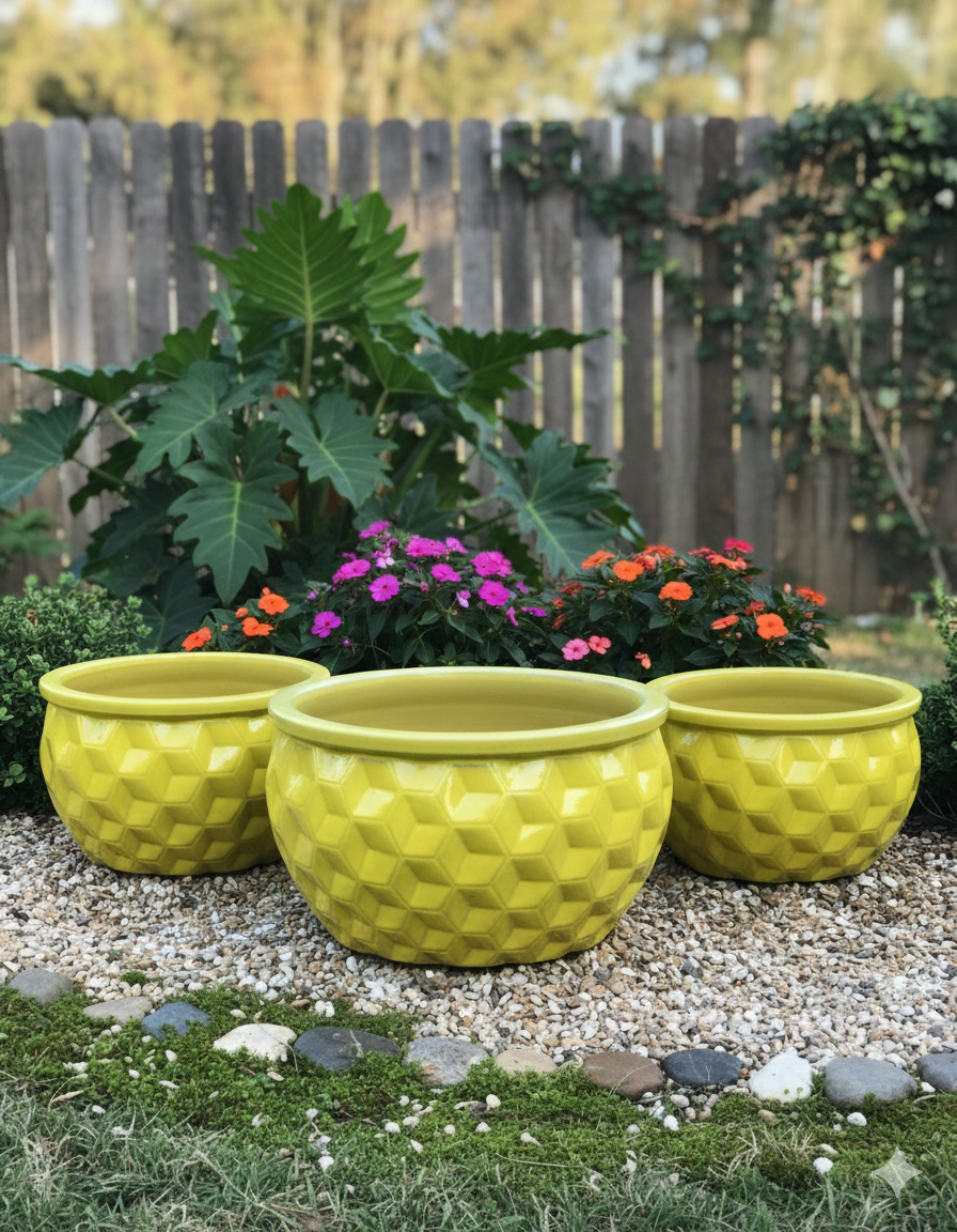 Tapered Bowl Profile: Each planter is engineered with a wide, reinforced rim and a subtly tapering body. This specific shape offers a generous surface area for planting while ensuring a lower center of gravity, providing excellent stability for taller plants or wind-prone outdoor areas.