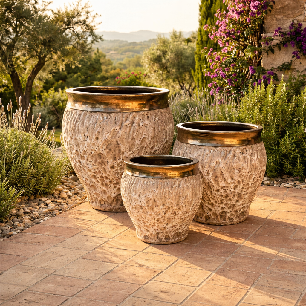 Crafted for both residential and commercial landscapes, the varying heights allow for dynamic staging and perfect for entryways, patios, pool decks, courtyards, and upscale garden installations. Whether styled with ornamental grasses, tropical foliage, or seasonal color, this trio delivers instant impact.