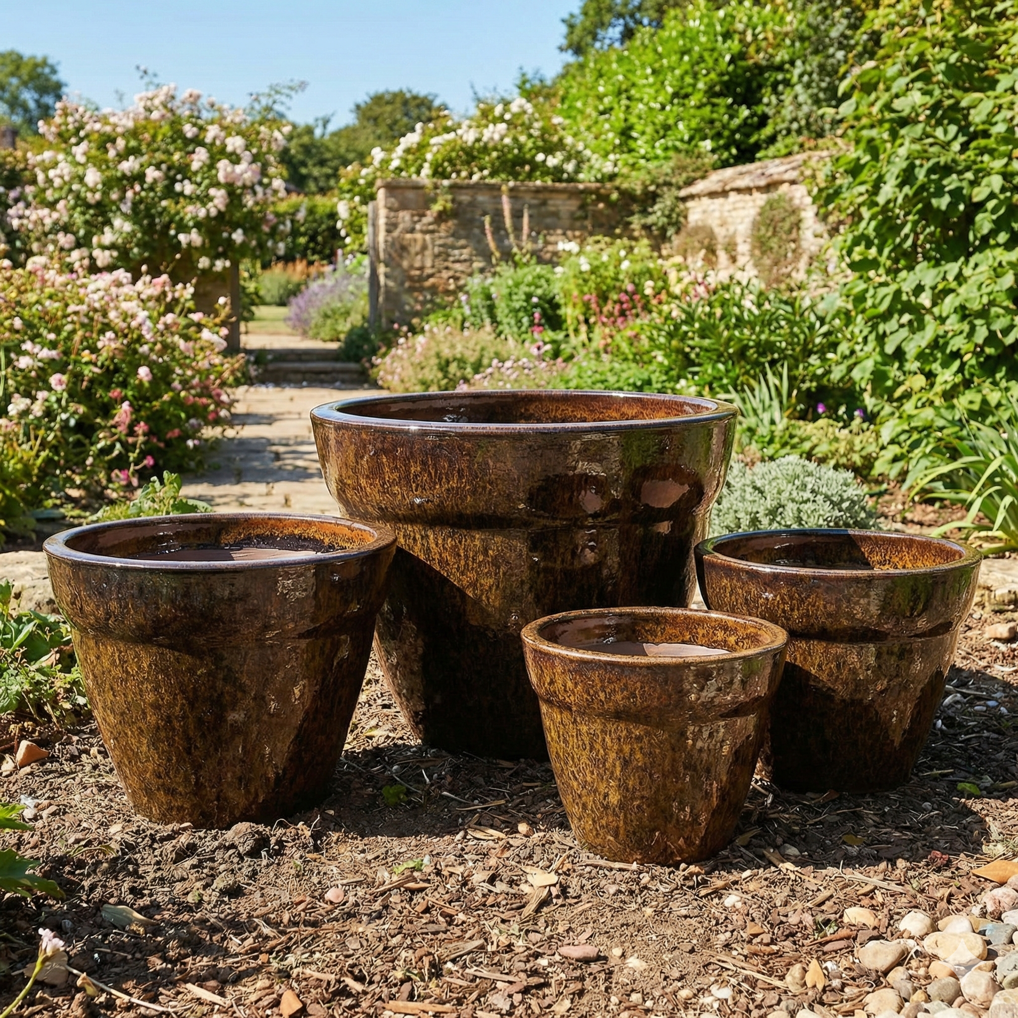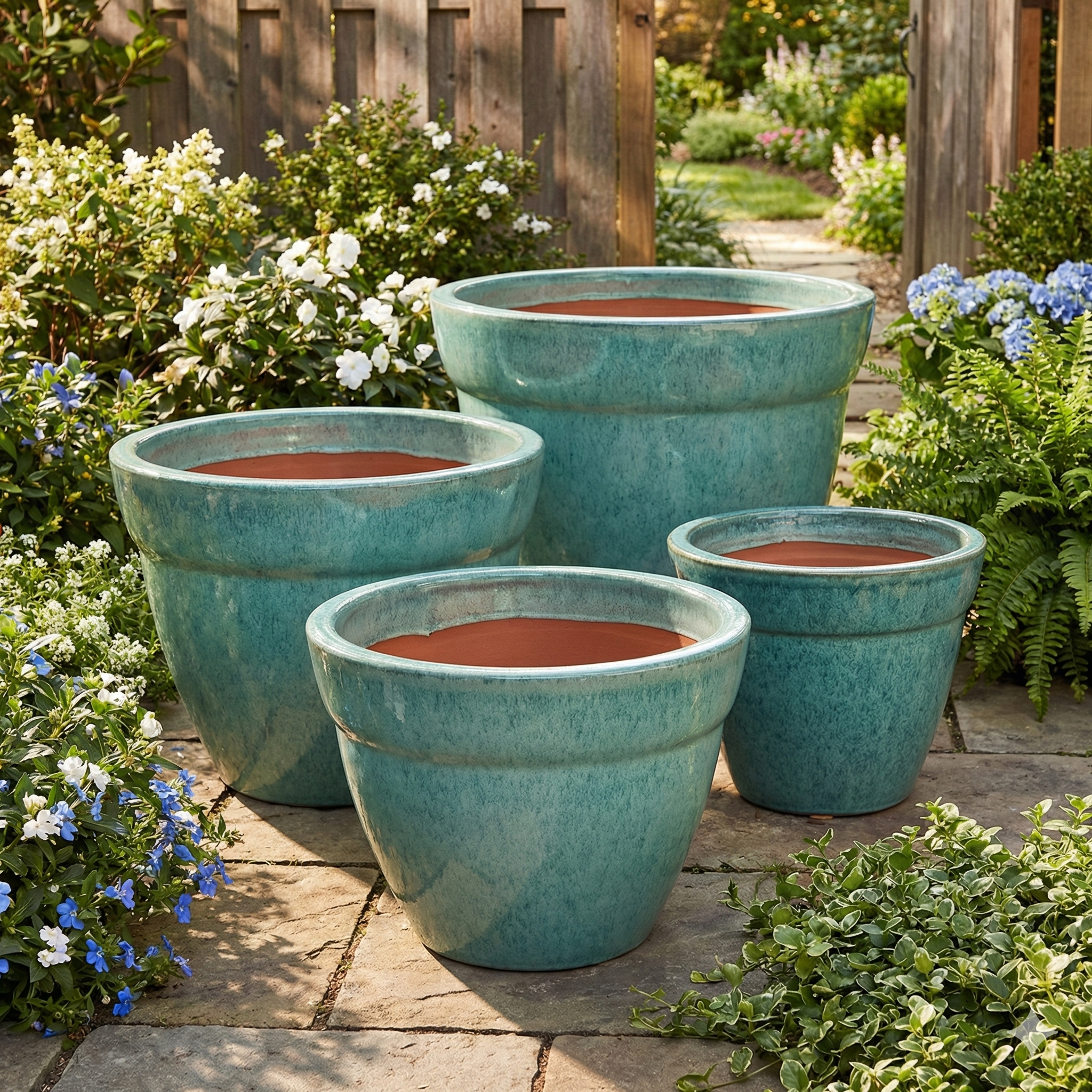 • Proportional Graduated Sizing The set includes four distinct dimensions, ranging from a substantial statement piece to a compact accent pot. This allows for a “nested” visual effect that provides height variety in your garden design without breaking the stylistic theme.