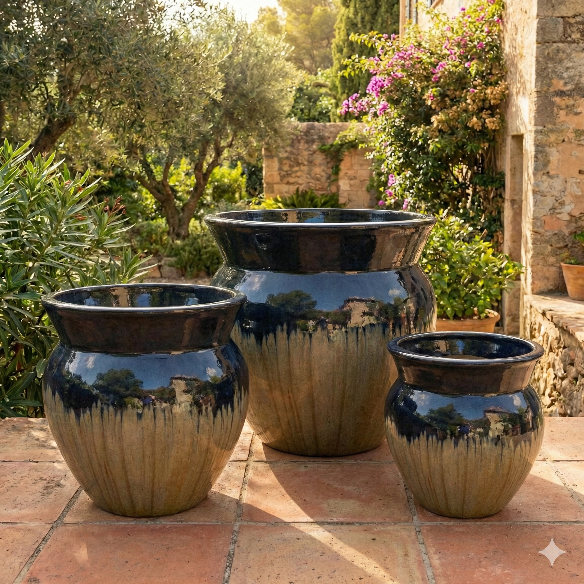 These planters are the perfect blend of classic elegance and modern durability. With their iconic bulbous silhouette and prominent flared rims, they serve as a sophisticated anchor for any landscape design. The high-gloss finish adds a layer of refined polish, making them just as suitable for a grand entryway as they are for a sun-drenched Mediterranean terrace. Whether you’re housing architectural greenery or a lush burst of seasonal flowers, these vessels provide the substantial presence needed to elevate your garden’s aesthetic.
