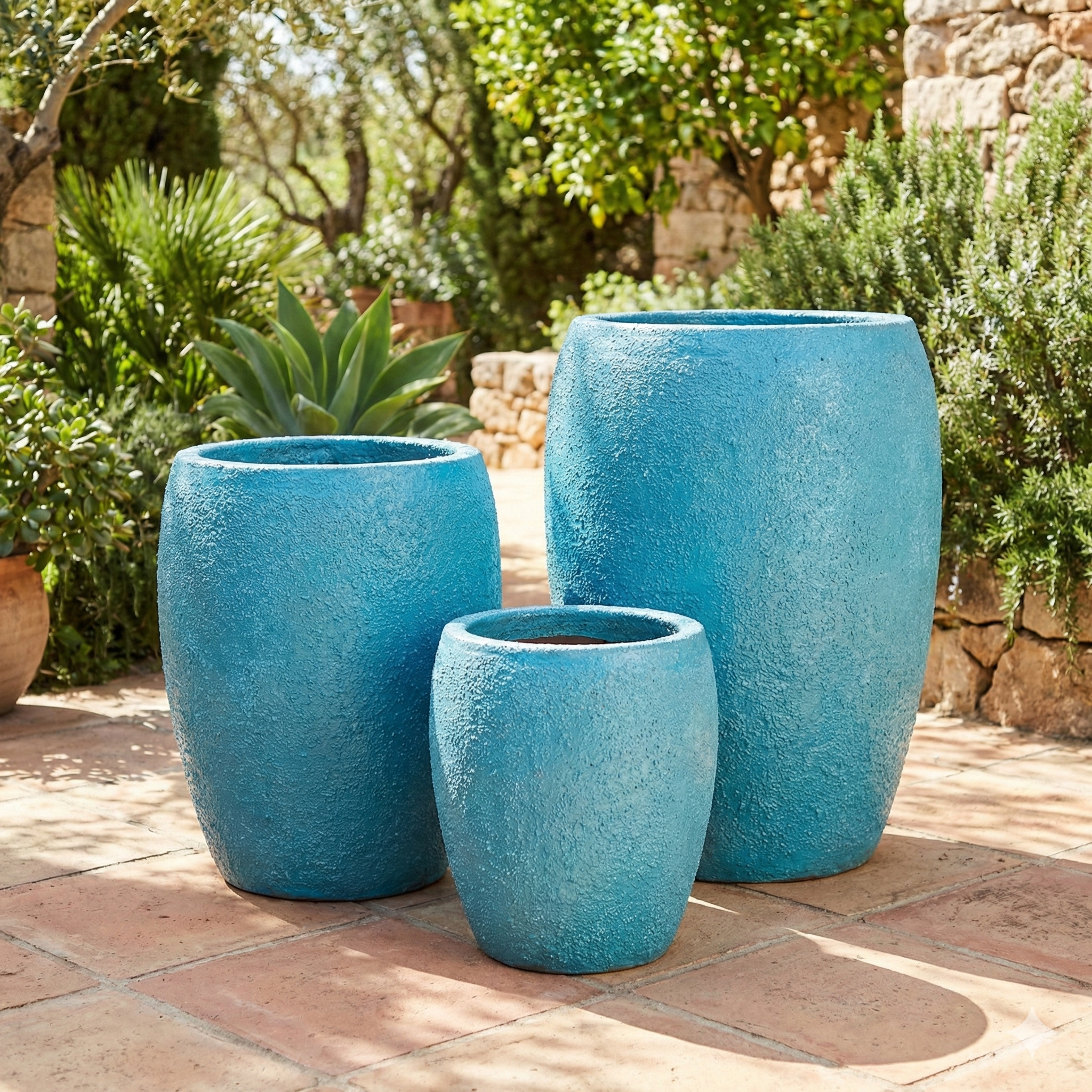Infuse your outdoor or indoor living space with the vibrant, refreshing spirit of the seaside. The Sandy Turquoise Beach Planter set captures the essence of a tropical getaway through its stunning color and unique tactile finish.
