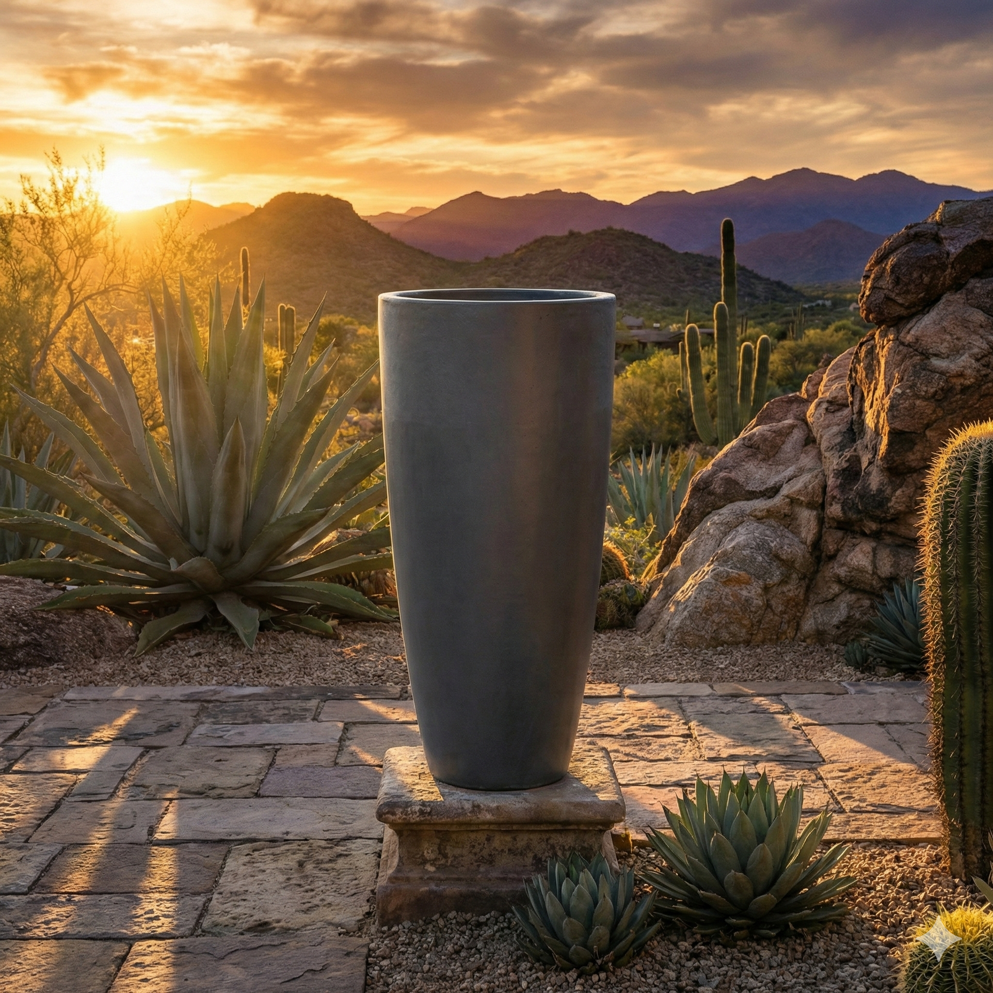 • Commanding Scale and Height Specifically crafted in an extra-large size, this planter creates a high-impact focal point, making it the ideal vessel for showcasing large-scale botanicals or structural plants.
