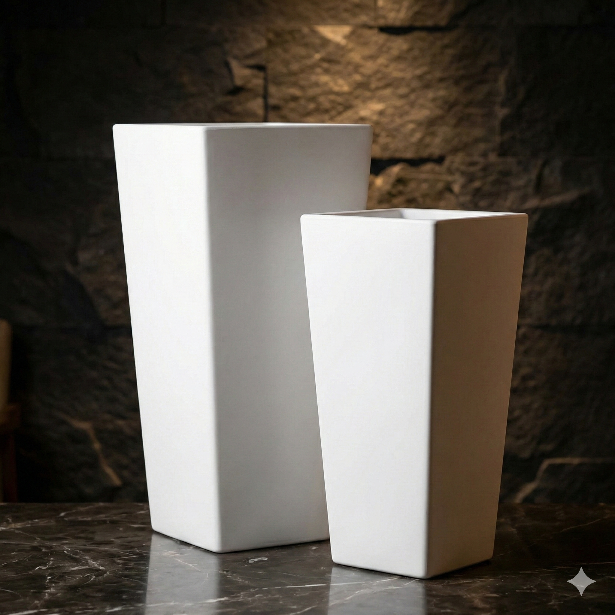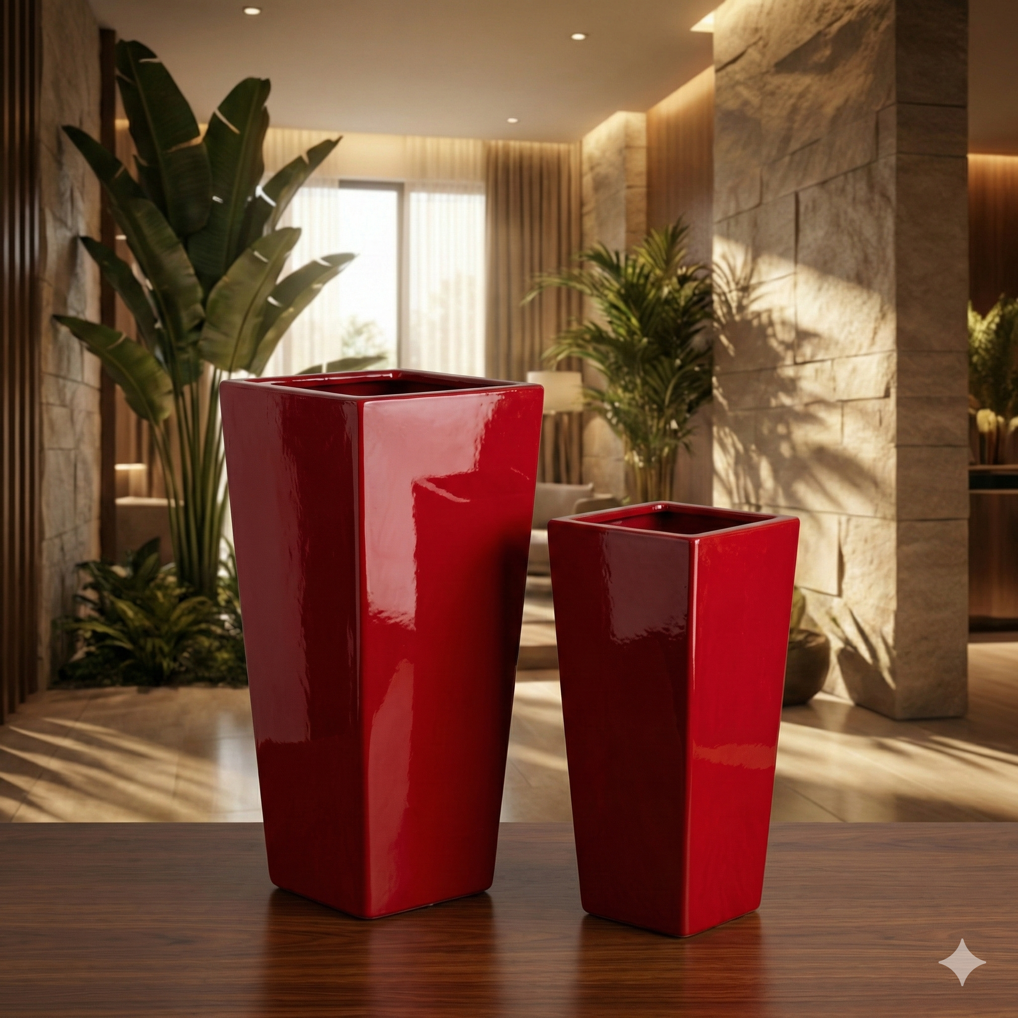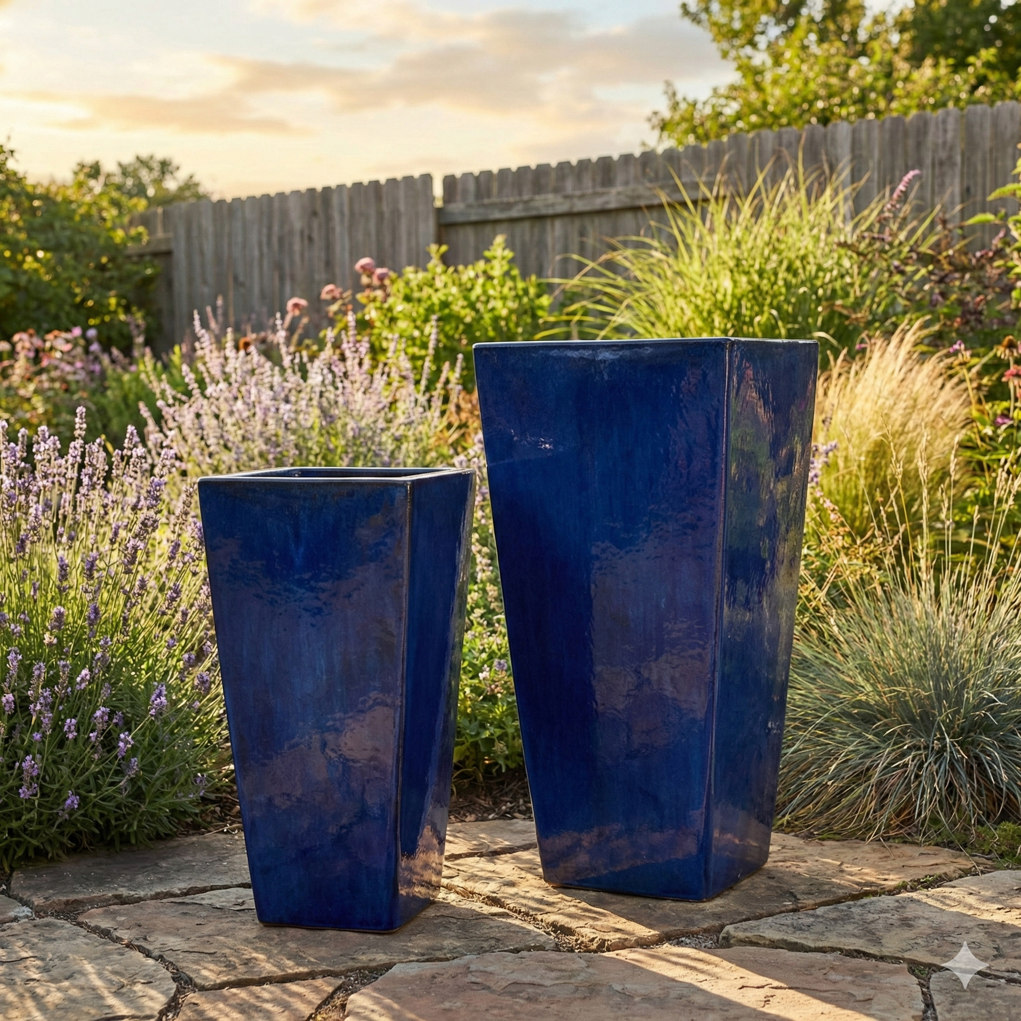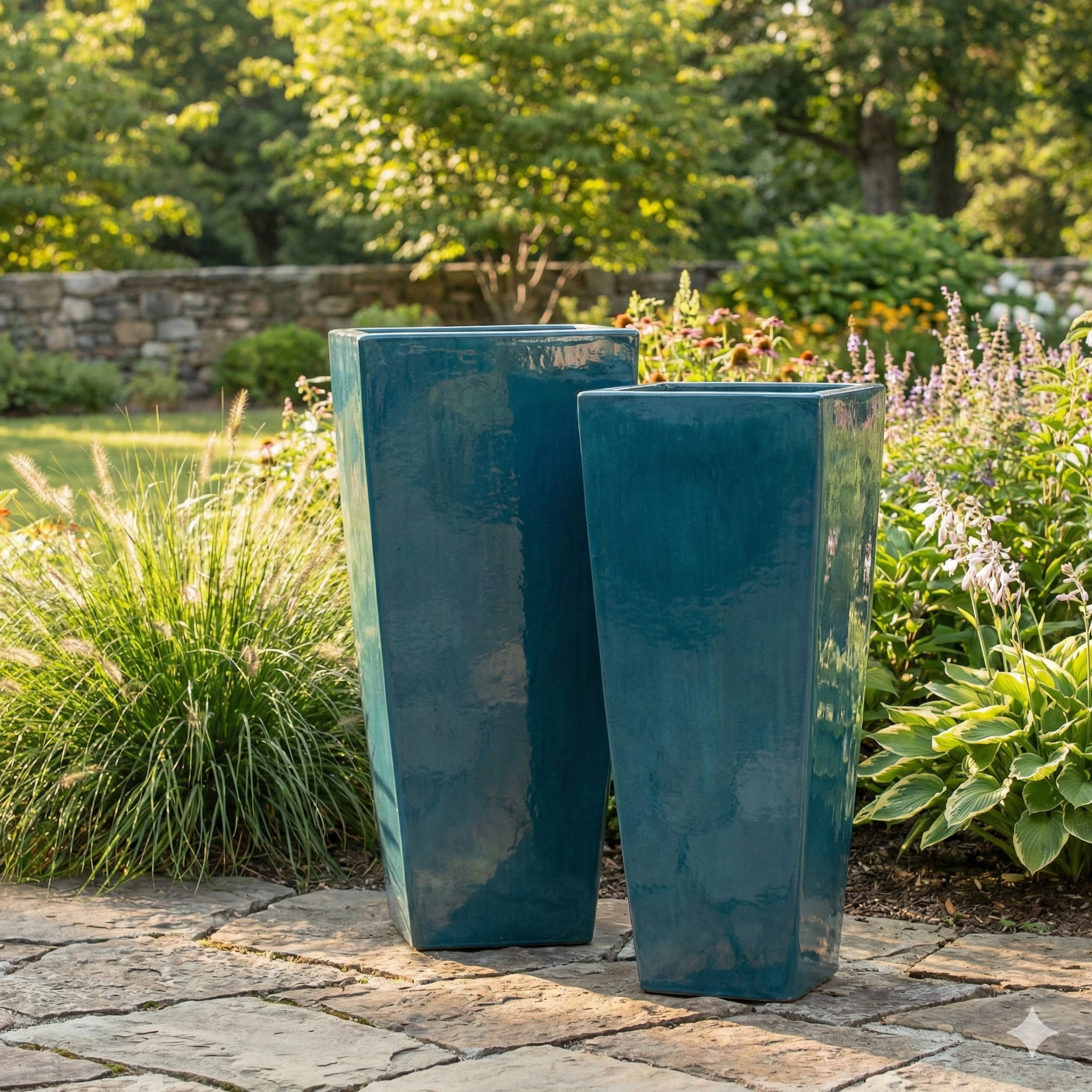 This set of premium ceramic planters combines a sleek, modern silhouette with artisanal craftsmanship to elevate any landscape or interior. Each piece is handcrafted from high-quality clay and finished with a rich, multi-layered glaze that catches the light from every angle. The dramatic, tapered square design provides striking vertical interest, making these pots perfect for framing entryways or adding a sophisticated focal point to garden corners. Designed for both beauty and longevity, these substantial planters offer a timeless aesthetic that complements a wide range of architectural styles.